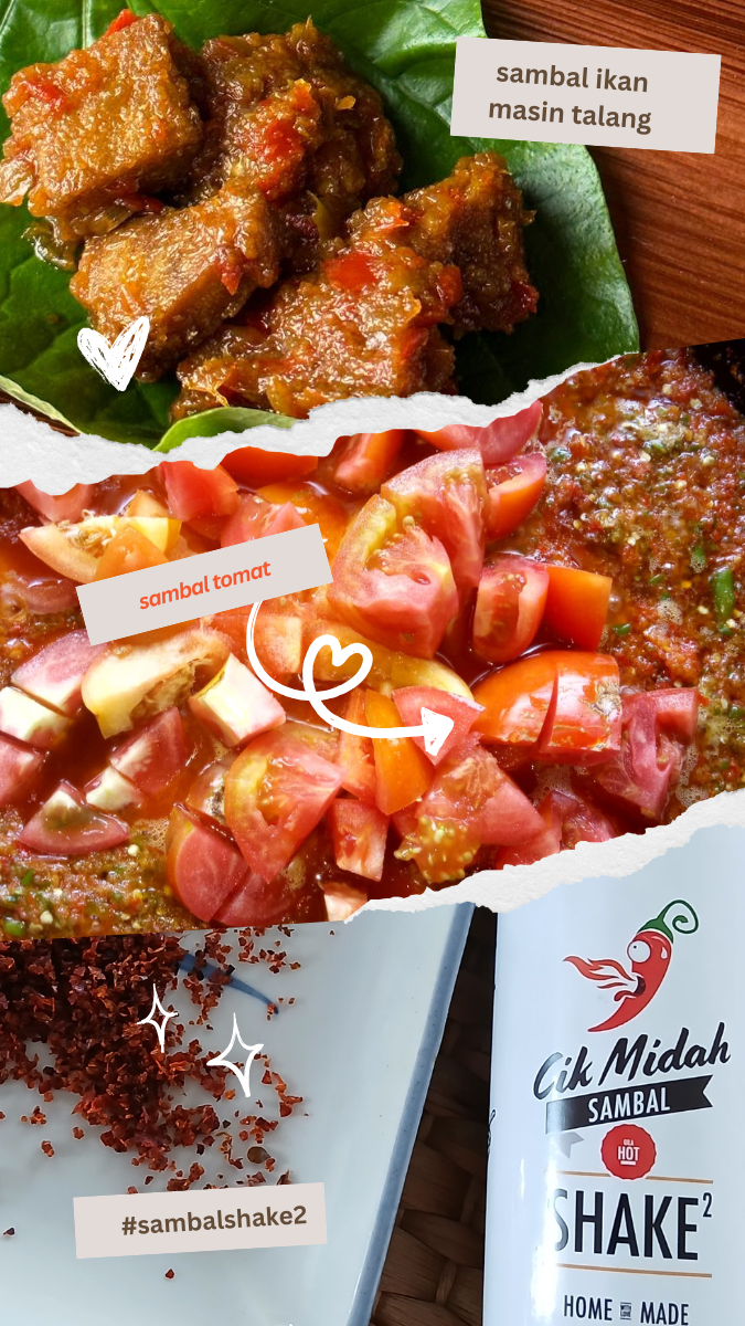 A dry sambal with a spicy twist! Made from blended dried chilies, onions, garlic, herbs, and chicken stock , sugar and salt.