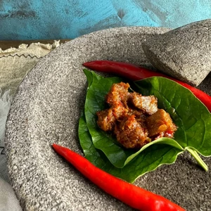 Made with premium salted Talang fish, red chilies, bird’s eye chilies, palm oil, shallots, garlic, and tamarind slices